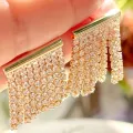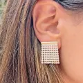 Brinco Franja em banho folheado a Ouro 18k, com zirconias enfileiradas e acabamento polido que valoriza cada pedrinha, oferecendo brilho intenso e movimento a peça. Com largura de 2cm e altura 2,5cm. Perfeito para festas, eventos e looks sofisticados.