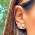 Brinco Bolinha Cravejada em banho de Ouro 18k com zircônias que capturam a luz de todos os ângulos. Design compacto e elegante, perfeito para looks do dia a dia ou ocasiões especiais. Fecho seguro de tarraxa, conforto o dia inteiro e resistência para uso diário.